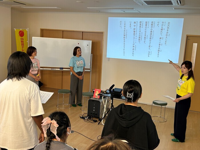 また、アナウンサーならではの発声練習や原稿読み体験も取り入れ、体を動かし、声を出し、職員の方も一緒に楽しんでもらう、笑顔あふれる時間となりました。